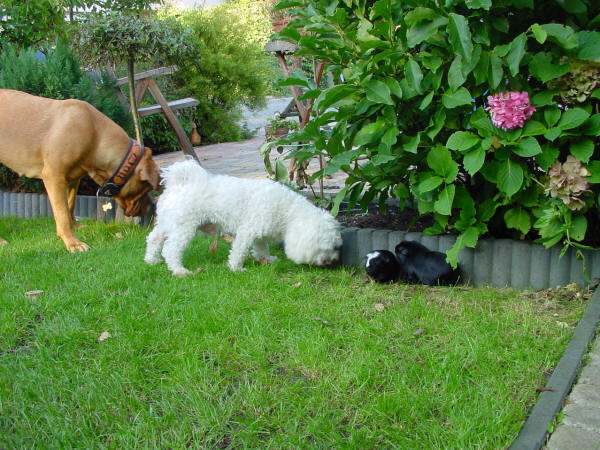 Nu we het toch over cavia's hebben.... Doordat ik vanaf klein puppy al met de caviaatjes mocht omgaan doe ik ze helemaal niets! Ik vind ze wel heel heel interessant, en ik geef ze graag natte kusjes!