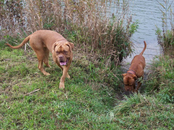 Alles moet geïnspecteerd worden natuurlijk. Sarge doet de waterkant wel, want die is panisch van water, maar Harley duikt er wel in hoor!