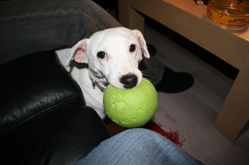 Zo! Socialisatie puntje twee vandaag! Mijn zusje Rose en haar vriend Danny kwamen op visite, en zij hadden Vriend zijn nichtjes Chance en Noa mee! Dolle prettttt!!!! Chance heeft een beetje een trauma opgelopen toen ze klein was, en daardoor is zij niet zo erg speels met andere honden, maar die NOA zeg! pfoe! wat hebben Vriend en Noa gespeeld! Ik had hem nog niet zo actief gezien! En ik krijg nog wat met hem te stellen, want die drol was nog behoorlijk op haar aan het rijden ook! Dat wordt nog wat.....