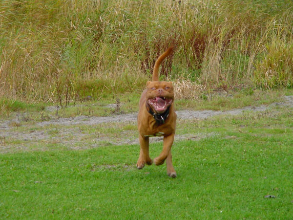 mijn vriendje Harley komt even aanstormen... Zo wordt je zowat bang van hem! Hahahha! Super lieve hond hoor!