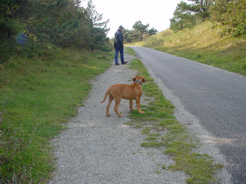 Hier wandelen bij de duinen, moet ik nu naar de baas of naar het vrouwtje toe?