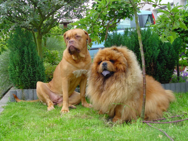 Dan nog Sjef. Sjef de waakse Chow Chow. Er hangt een bordje op het hek van de eigenaren van Sjef met "ik waak voor mijn baas! " dit geheel terecht, want hij heeft al eens een eigenwijze krantenjongen te pakken gehad, en ook een aantal honden die niet aan de riem liepen... Hij is dus een zeer waakse en dominante hond. Maar hij is echt helemaal verliefd op Sarge, en speelt heel graag met haar. Binnen no-time is hij bekaf, want hij speelt dus bijna nooit met andere honden.... En dan die dikke vacht! Wauw... Mooie hond hoor.