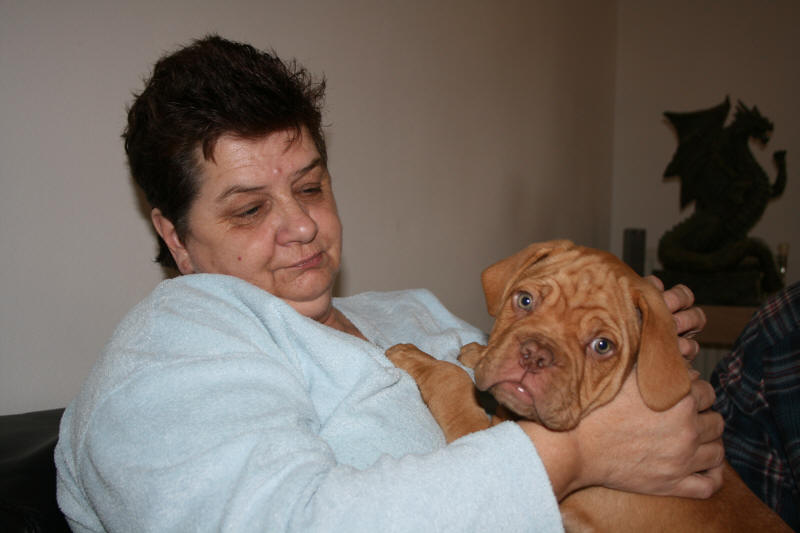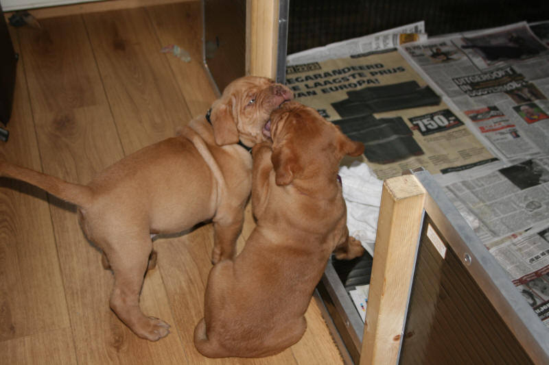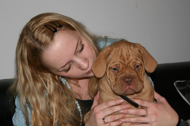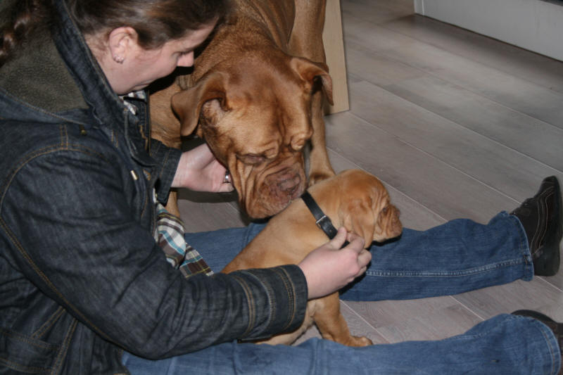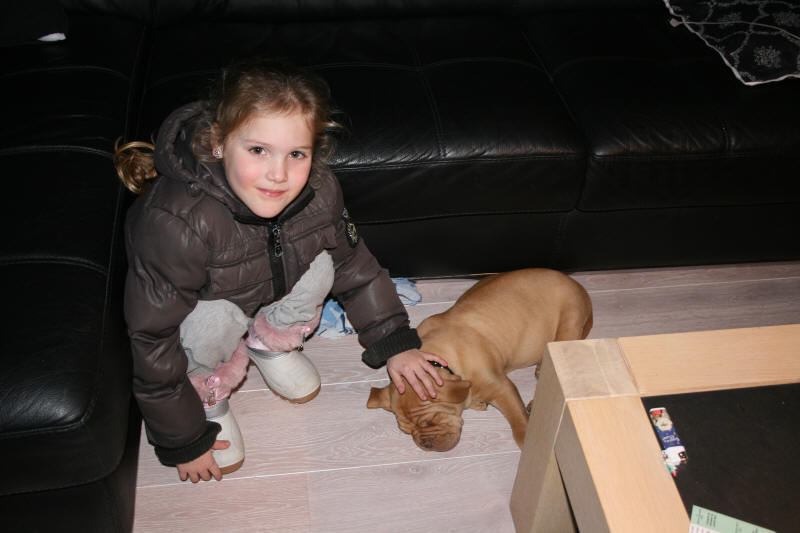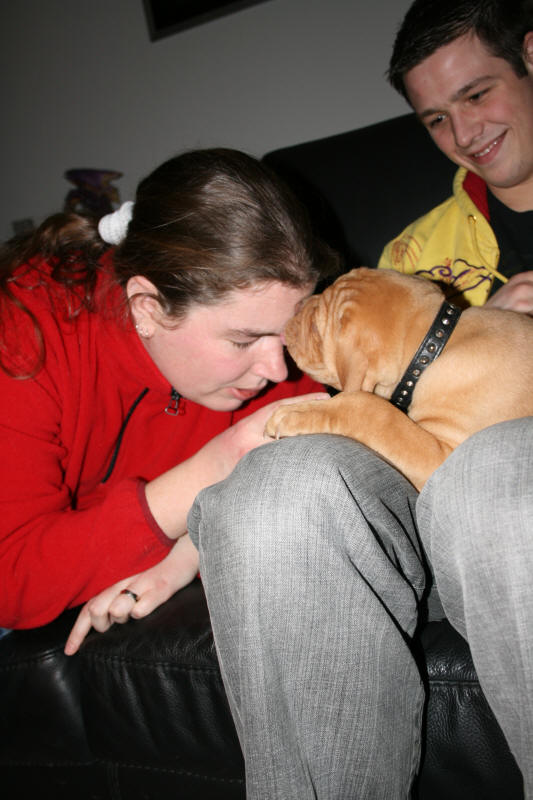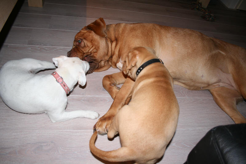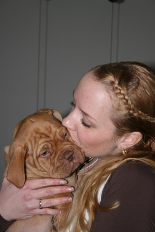 Sarge zegt hier tegen mijn nieuwe vrouwtje dat ze best blij is met mij als broer, wat mijn nieuwe vrouwtje krijgt ook veel kusjes!