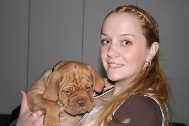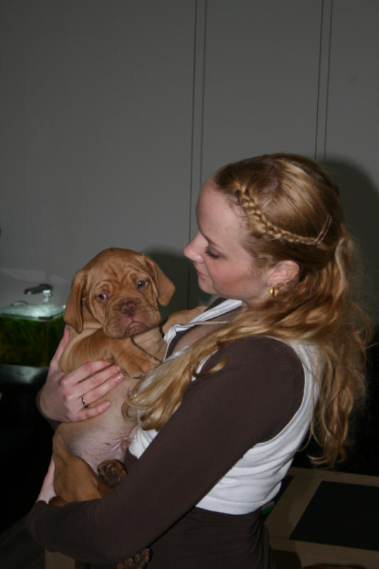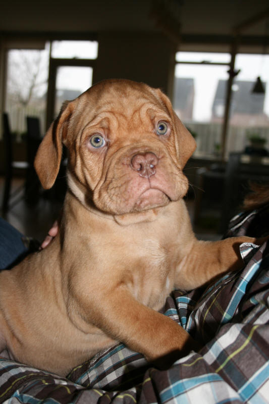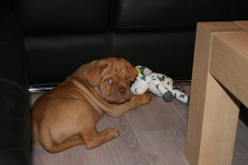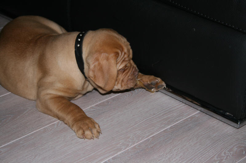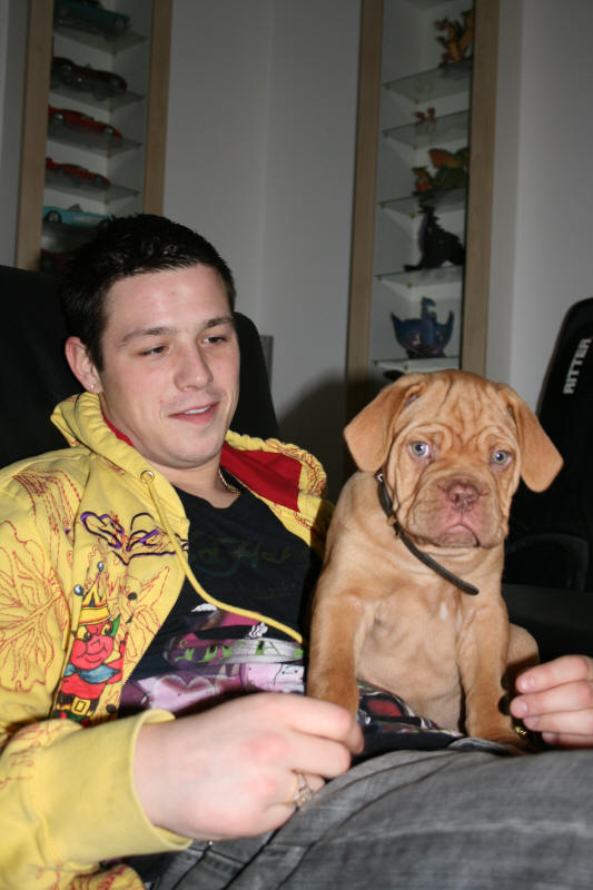 Vriend heeft ook een onwijs leuk cadeau gehad van zijn tante en oom. hij kreeg een halsbandje en riem van DutchyPuppy! onwijs stoer limegroen. op latere foto's zie je die dan ook. Een spikehalsbandje is ook veel te stoer voor een Bordeaux dog.