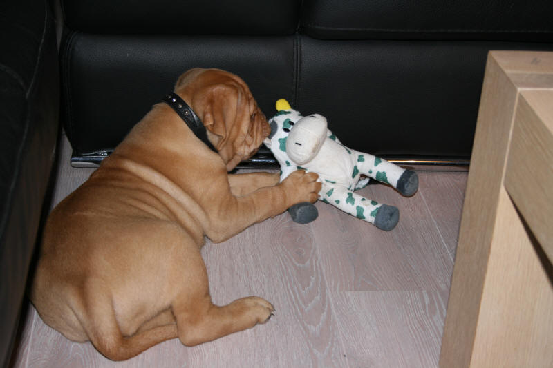 Toen ik weer wakker was heb ik even met deze gekke piepende koe gespeeld. Dit is nu al mijn favoriete speeltje!