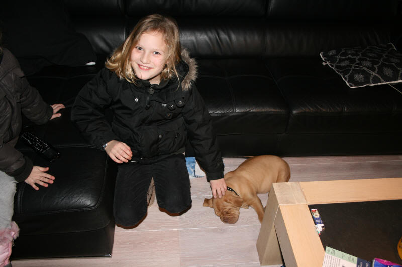 Buurmeisje Nikki kwam ook even kijken. Ze had twee kauwschoentjes mee. 1 voor mij en een voor Sarge.