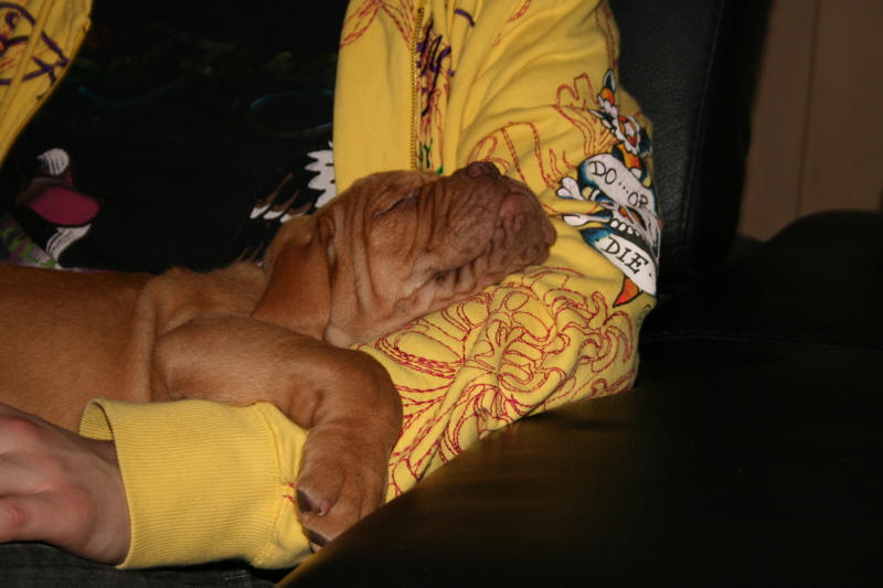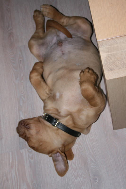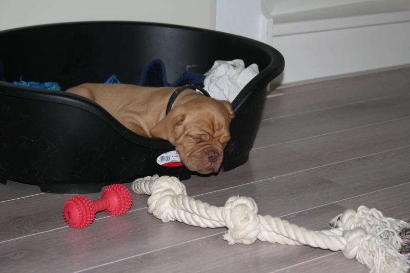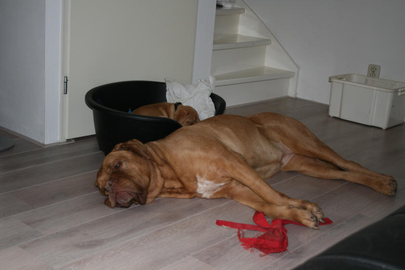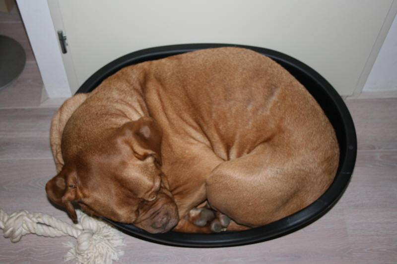 Veel mensen zeggen: "Is dat mandje niet veel te klein voor een Bordeauxdog? Nou, Sarge laat wel even zie dat je best een paar uur lekker kan maffen in dat mandje hoor.